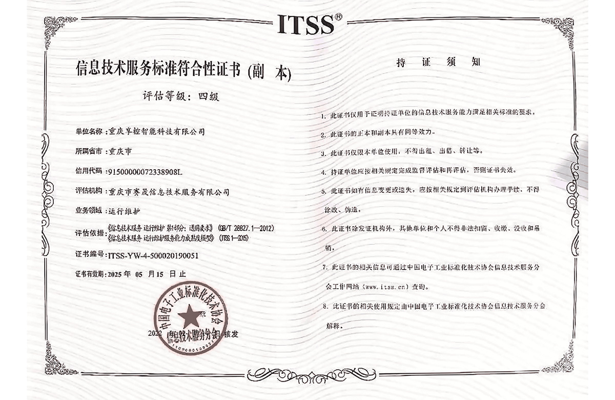 獲信息技術(shù)運(yùn)行維護(hù)標(biāo)準(zhǔn)符合性證書(shū)